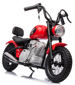The Rebel Rider Electric Cruiser offers the perfect blend of excitement and safety. Its powerful motor and long-lasting battery ensure hours of fun, while the advanced safety features like the rear suspension and disc brakes provide peace of mind for parents. The authentic design, complete with key ignition and display screen, will make your child feel like a true biker.